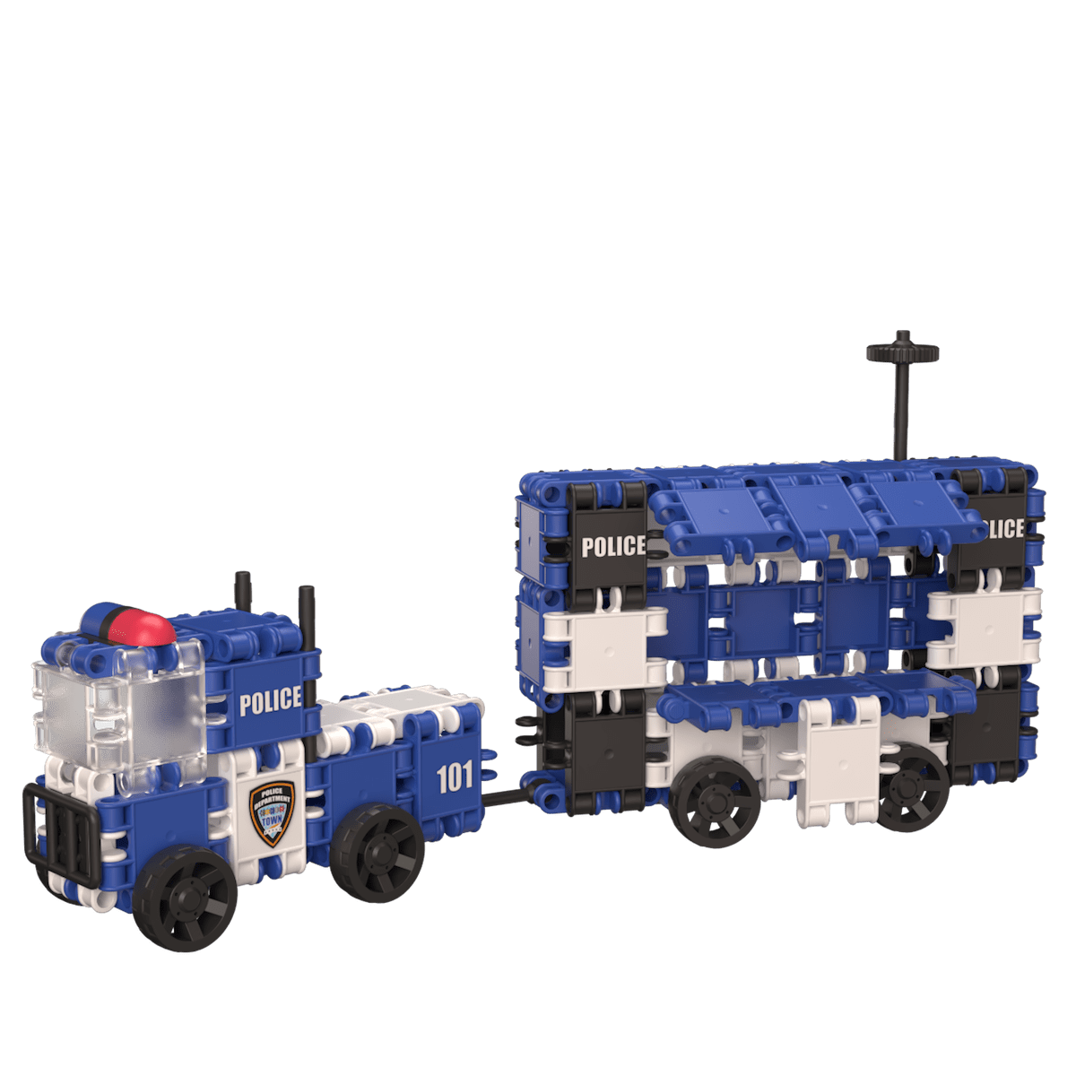 Unikalna technologia łączenia klocków CLICS umożliwia tworzenie zarówno płaskich, jak i przestrzennych konstrukcji. Dzięki patentowanemu systemowi „klik”, elementy łączą się pewnie i stabilnie, pozwalając na budowę wytrzymałych modeli pojazdów policyjnych. Zestaw zawiera wszystko, co potrzebne do stworzenia radiowozu, helikoptera policyjnego, motocykla czy łodzi patrolowej. Praktyczne wiaderko służy nie tylko do przechowywania, ale może zostać wykorzystane jako element konstrukcji.