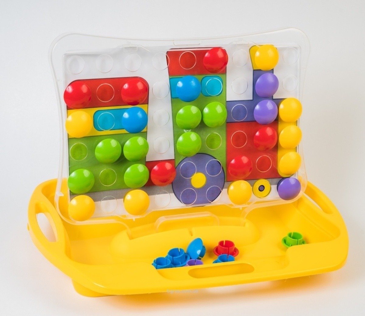 Zestaw obejmuje różnokolorowe elementy oraz instrukcje dostosowane do różnych stopni trudności. Poprzez umiejętne łączenie kolorowych „grzybków”, dziecko może tworzyć obrazy zgodnie z instrukcjami zawartymi w zestawie. Estetyczna walizeczka ułatwia przechowywanie całego kompletu.